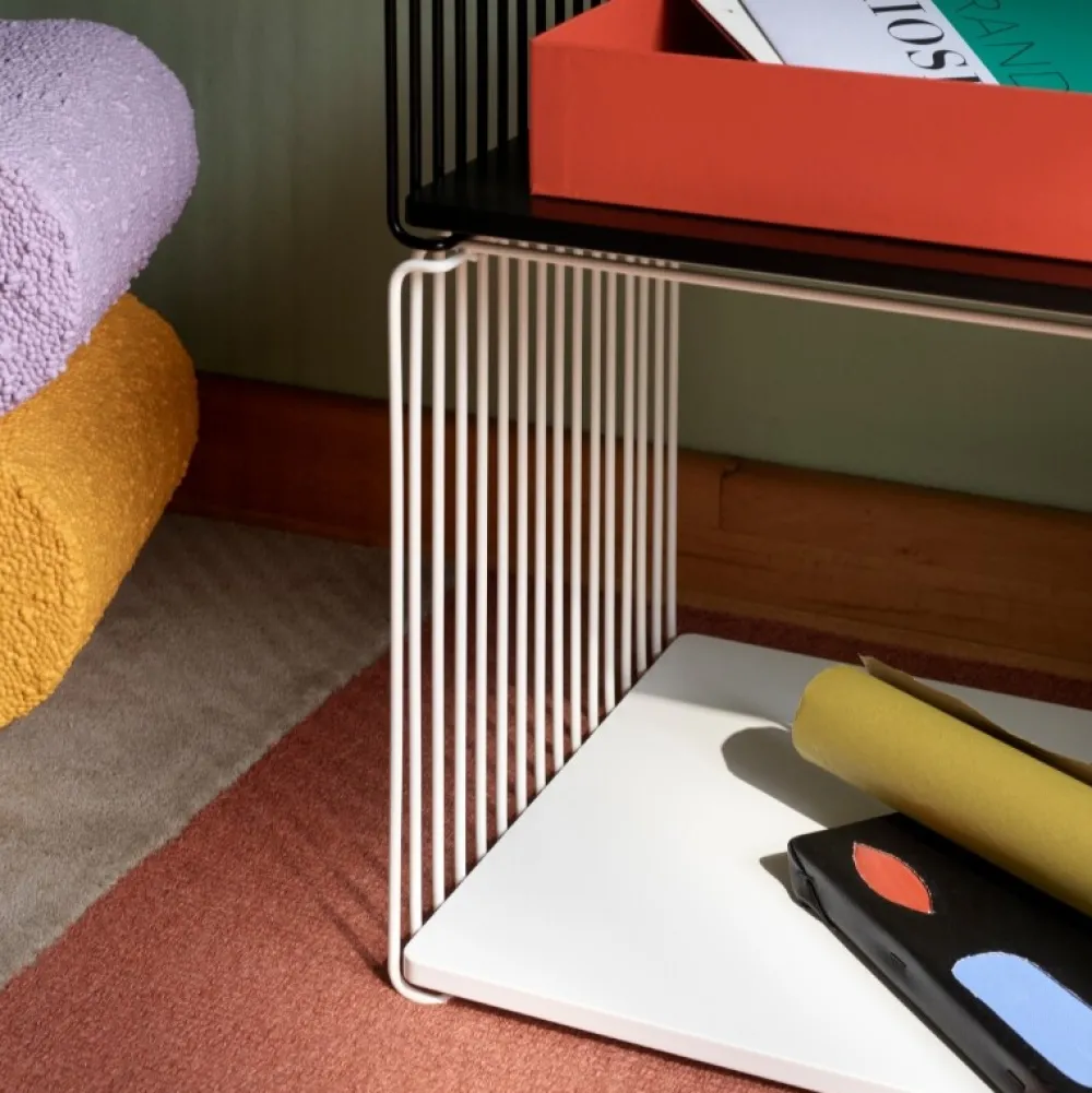 Panton Wire trådreolen er fremstillet i forkromet stål og lakeret sort. Materialet giver reolen et råt look, der står i flot kontrast til designet, der er minimalistisk og elegant. Denne opbevaringshylde har en rektangulær form og kan bruges overalt i boligindretningen.