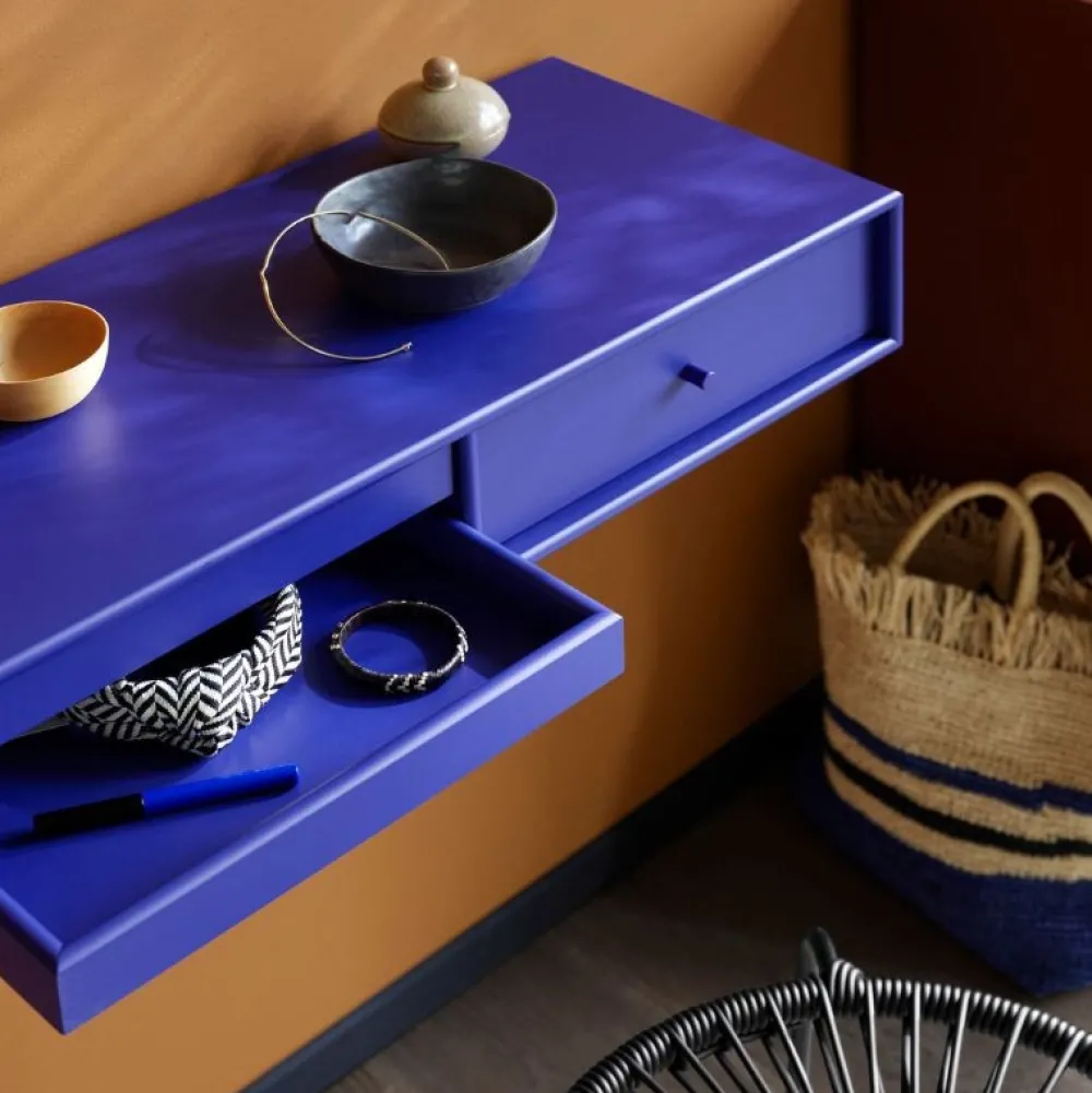 Makeup er et vægmonteret makeup-bord i dybde 30. Bordet kommer med en enkelt skuffe og to udtagelige bakker; perfekt til at opbevare og holde orden i din makeupsamling og accessories. Makeup passer elegant ind i både entréen og på soveværelset.