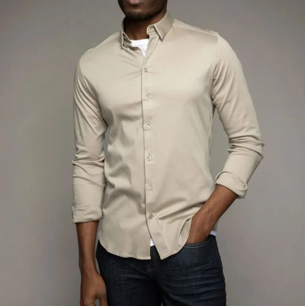 MMGMarco Jersey Skjorten har skjult button-down krave, gennemgående knaplukning samt manchetter med knapper – detaljer, der løfter helhedsindtrykket og gør skjorten ideel både til forretningsbrug og smart-casual lejligheder. En uafhængig laboratorietest af stoffet viser, at det bevarer sin form, farve og struktur – selv efter 100 vaske.