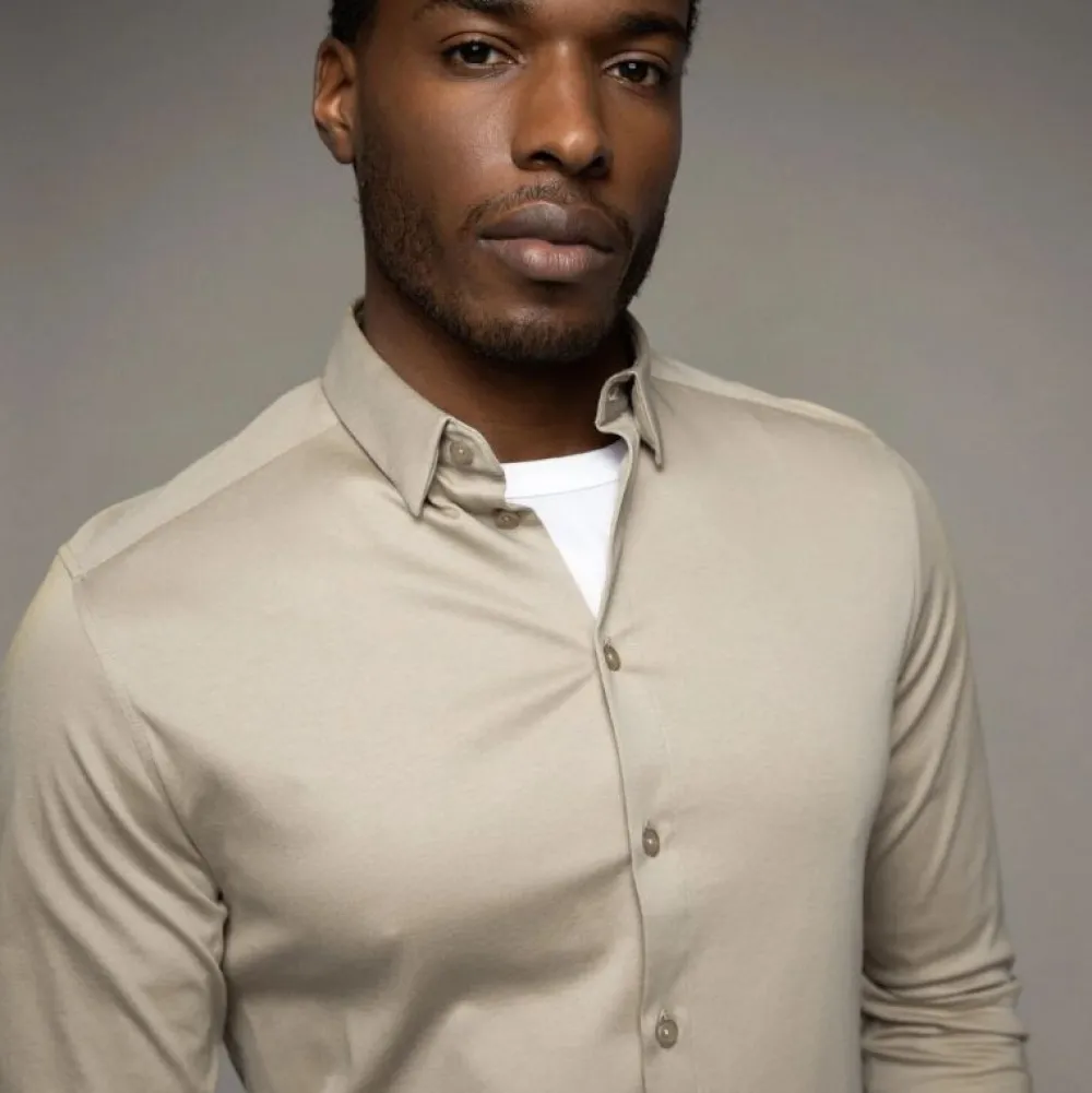 Opdag den perfekte kombination af elegance og komfort med Mos Mosh MMGMarco Jersey Skjorte. Denne stilfulde skjorte er designet til en slank pasform og fremstillet i et eksklusivt dobbeltstrikket bomuldsstof, der giver ekstra styrke, strækbarhed og holdbarhed sammenlignet med almindelige jerseymaterialer. Stoffet er dobbelt merceriseret, hvilket giver skjorten en luksuriøs glans og en glat finish, der holder vask efter vask.