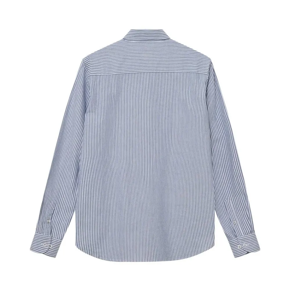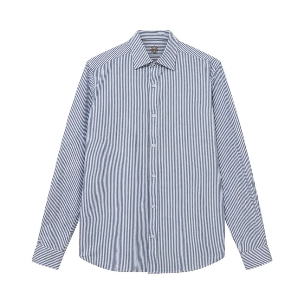 En tidløs klassiker, hvor enkelhed møder gennemført håndværk. Den lyseblå, stribede oxfordskjorte kombinerer en regulær pasform med klassisk krave, lange ærmer og knappede manchetter, hvilket skaber et stilrent og sofistikeret udtryk. Alsidig og let at style, fungerer skjorten som en skarp base i både formelle og mere afslappede outfits. Et uundværligt element i garderoben for den, der ønsker tidløs elegance uden at gå på kompromis med komfort.