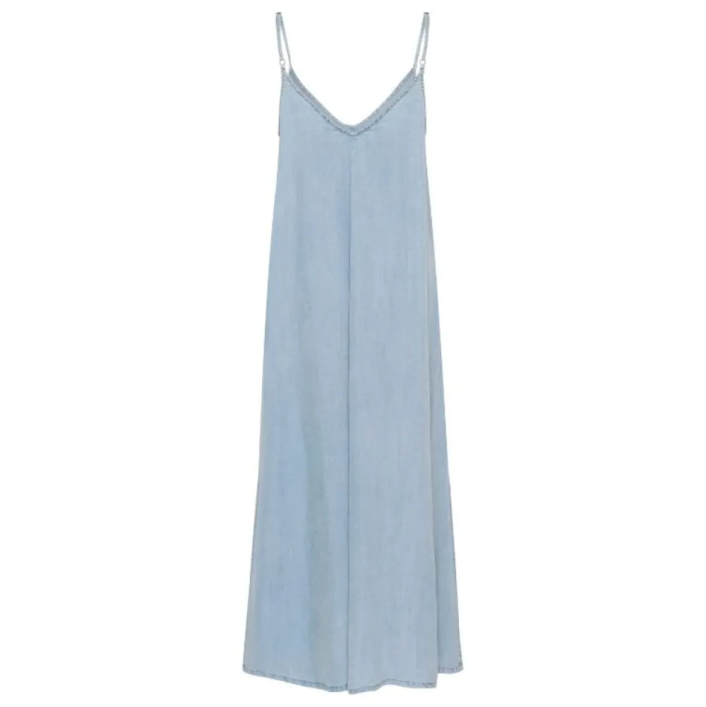 Fremstillet i 100% lyocell, er kjolen ikke bare smuk, men også behagelig mod huden og bæredygtig i sit materialevalg. Lyocell er kendt for sine åndbare egenskaber og silkebløde tekstur, hvilket gør denne kjole til et oplagt valg, når komfort og stil skal gå hånd i hånd. Den lyseblå vask giver et afslappet, moderne udtryk, som er let at style med både sandaler og sneakers.
