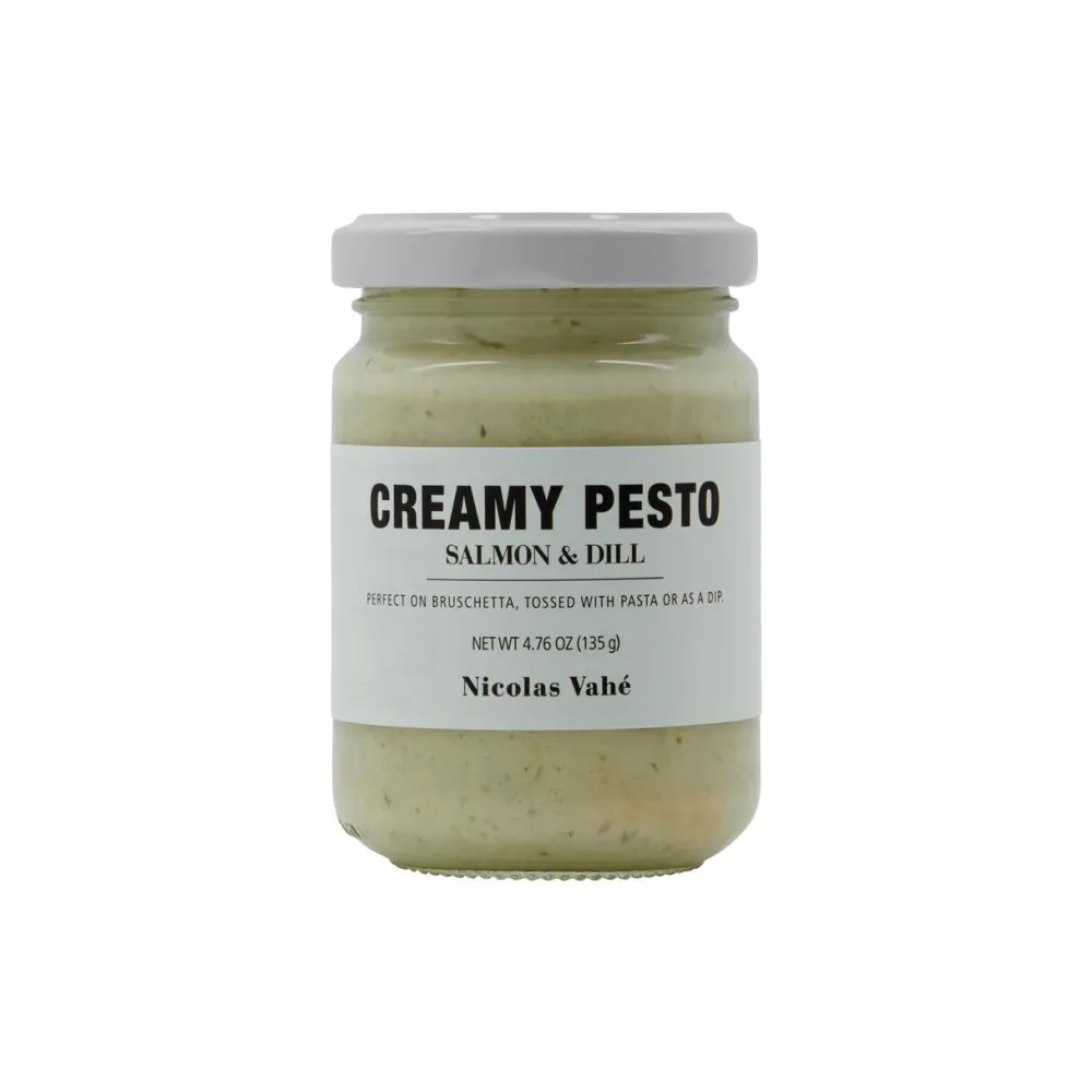 Denne cremede pesto kombinerer den fyldige, delikate smag af røget laks med frisk dild, og skaber en harmonisk smagsoplevelse. Ideel til pasta, som topping på canapéer eller til nye kartofler, hvor hver skefuld tilføjer et strejf af gourmet i hverdagen. Et lille luksustouch, der løfter måltidet med havets finesse.