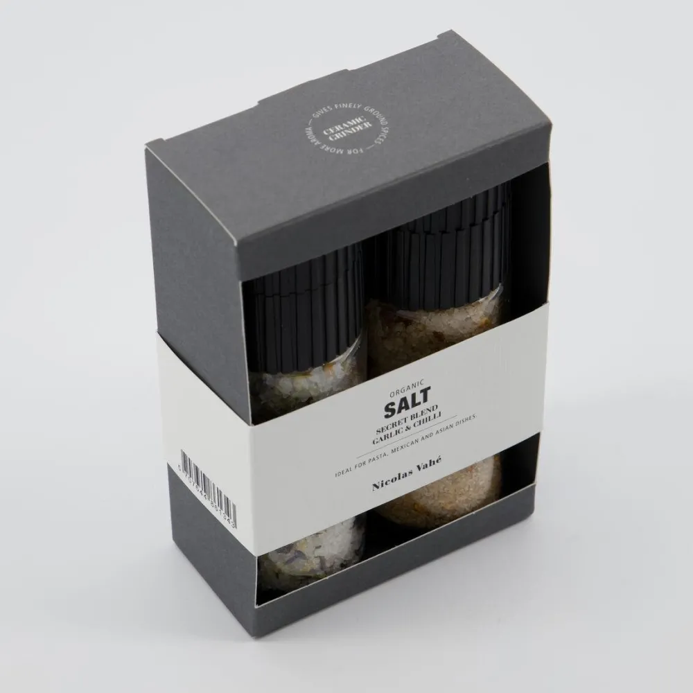 Gaveæske som indeholder dét krydderi, som kan fuldende enhver ret. Sættet består af salt blandet med lavendel, soltørrende tomater, sort peber, timian, rosmarin og hvidløg. Alle urter og krydderier, som kan forvandle et hverdagsmåltid til en oplevelse. Herudover er en salt med hvidløg og rød chilipeber, som tilfører en delikat smag – særligt i asiatiske og mexicanske retter.
