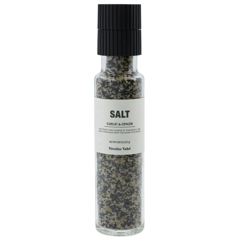 Velsmagende krydderiblanding, der skaber en kulinarisk smagsoplevelse. Qua saltblandingen med ingefær og sort sesam, tilføres et eksotisk pift til ethvert måltid. Et strejf af hvidløg komplementerer ingefæren og de sorte sesamfrø, og skaber en asiatisk-inspireret krydderiblanding, som giver nyt liv til opskrifter. Den medfølgende keramiske kværn sikrer fintmalede krydderier, således at de essentielle olier frigives og giver et boost af aroma og smag.