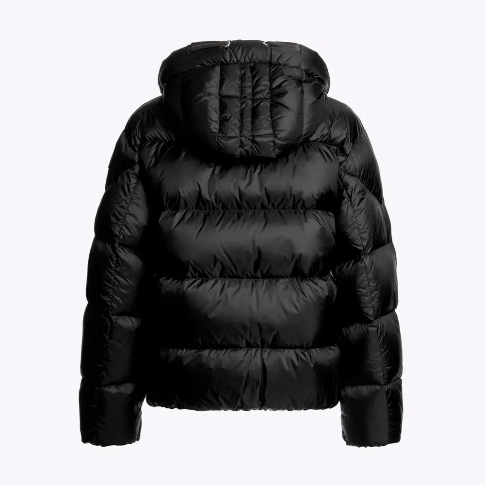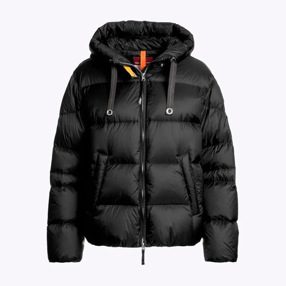 Foran lukkes jakken med en tovejslynlås, som giver fleksibilitet i brug. Hætten kan justeres med snøre, så pasform og beskyttelse let tilpasses. Modellen er udstyret med to udvendige lommer med trykknapper samt en praktisk indvendig netlomme. Elastiske manchetter og bund sikrer en smidig pasform, der hjælper med at holde på varmen. Signaturdetaljerne – Parajumpers-logoet på ærmet og den ikoniske aftagelige gule tape ved halslukningen – fuldender looket.