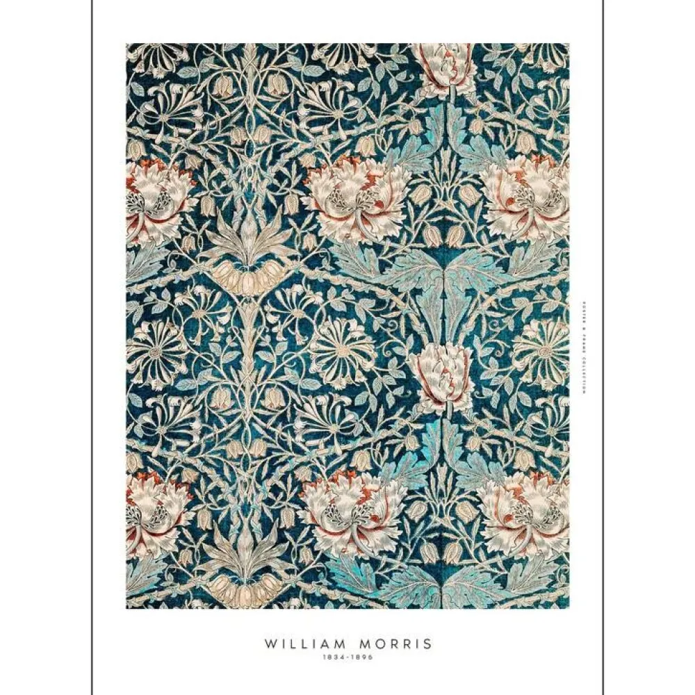 Flot og farvefin plakat, der er designet af William Morris. Afbenyttelsen af finurlige former og yndefulde farvenuancer er kendetegnende for hans design, hvilket endvidere afspejles i kunstplakaten. Illustreret i plakaten er et blomstermønster i blå og orange nuancer, der skaber kontrast, således mønsteret tilføres dynamik og harmoni.