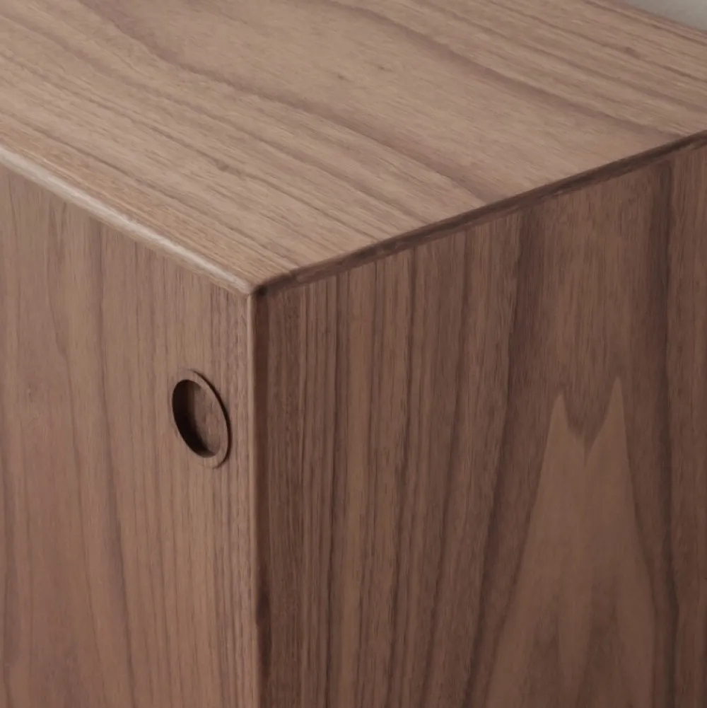 Mere end 60 år senere har Arne Vodders familie søgt i arkiverne i Vodder Møbler, sammen med Sibast Furniture. Sibast No 11 skænken er lavet af massivt træ med ege- og valnøddefiner. Den har vendbare døre med farvede overflader på den ene side og træ på den anden. Fås i gul, hvid, blå og sort. Træ- og stålben.