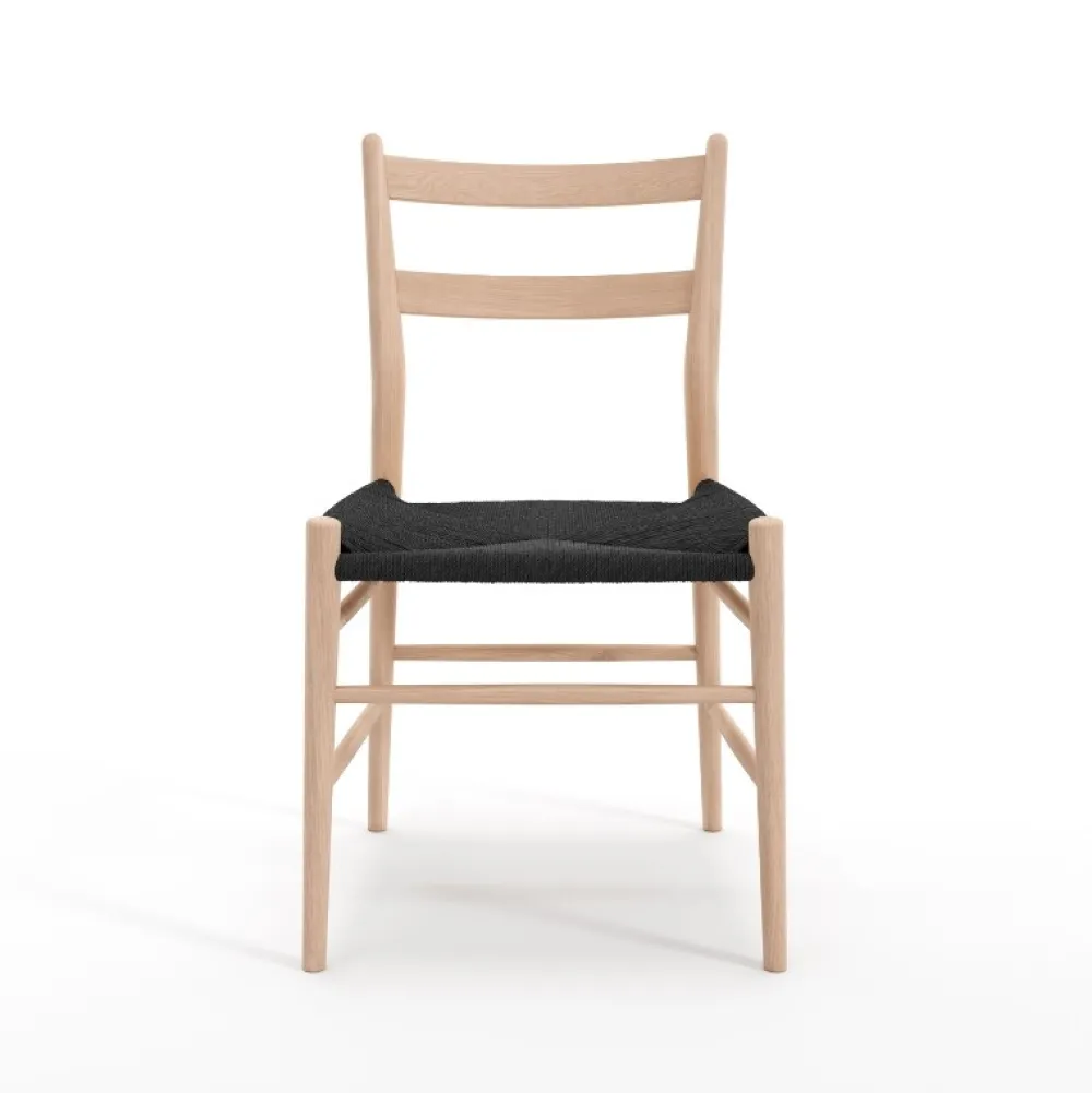 Inspireret af Shaker-stilens enkelhed og funktionelle skønhed har Sibast No 59 stolen et vævet papirsnorsæde i natur eller sort, hvilket tilføjer tekstur og varme til designet. Det buede ryglæn giver enestående komfort, hvilket sikrer, at stolen er lige så indbydende, som den er smuk.