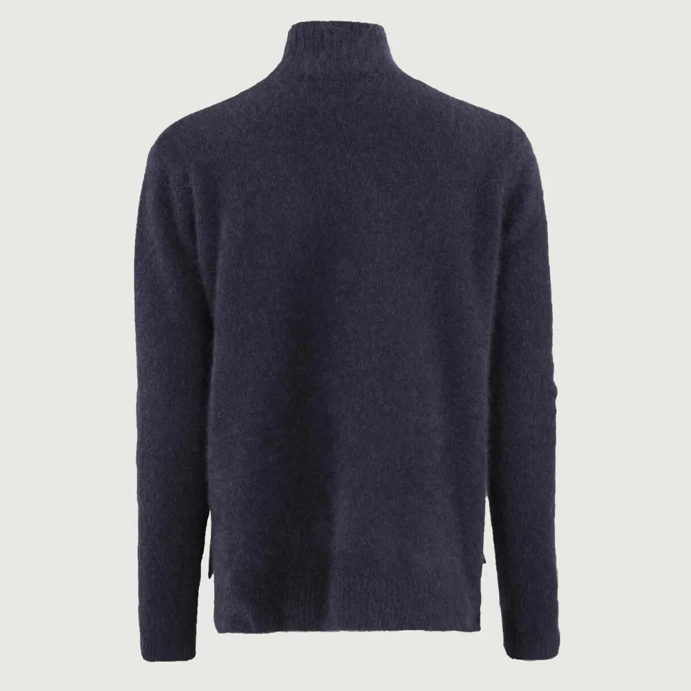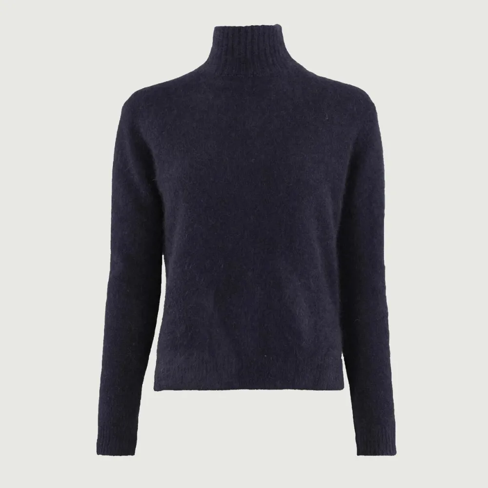 Komfortabel sweater, der forener æstetik, kvalitet og funktion. Den løse pasform og høje, runde hals skaber en omsluttende og indbydende form, mens ribkanter ved hals, ærmer og kant tilfører subtil struktur og elegant finish. Fremstillet i 100% ultrablød ræveuld, omfavner materialet kroppen med varme og behagelig komfort, hvilket gør sweateren til et luksuriøst lag på kølige dage. Et alsidigt garderobeitem, der forener tidløs stil med blød luksus – ideel til både hverdag og weekend.