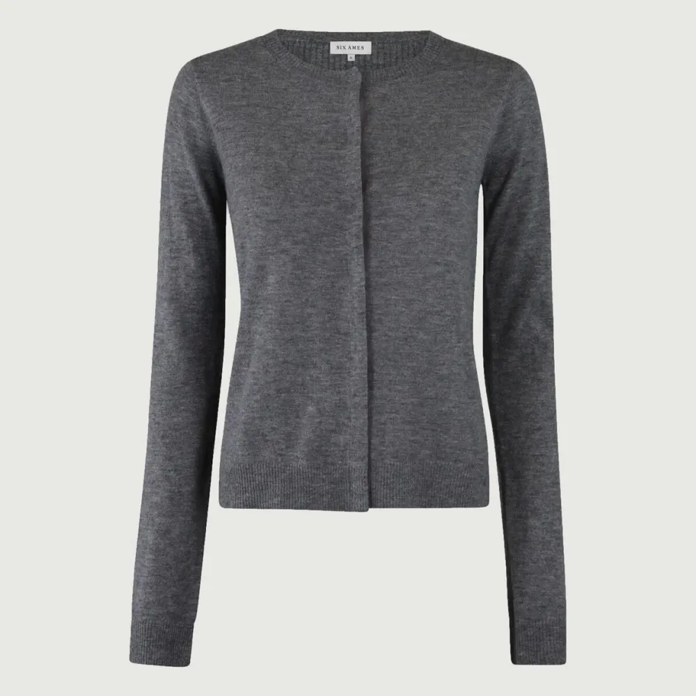 Luksuriøs cardigan, der kombinerer klassisk design med funktionel finesse. Cardiganen er udført i 100% merinould – et let, men isolerende materiale, der naturligt regulerer temperatur og modvirker lugt. Ribkanterne ved hals, ærmer og bund tilfører struktur og detaljer, mens grosgrain-tape og trykknapper på indersiden af stolpen sikrer en solid og sofistikeret lukning. Et alsidigt garderobeitem, der forener komfort, funktionalitet og tidløs stil i ét.