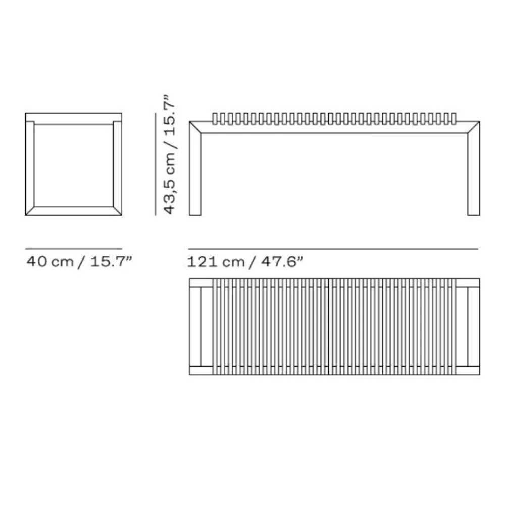 Mål: L 120 cm x D 40 cm x H 43 cm.