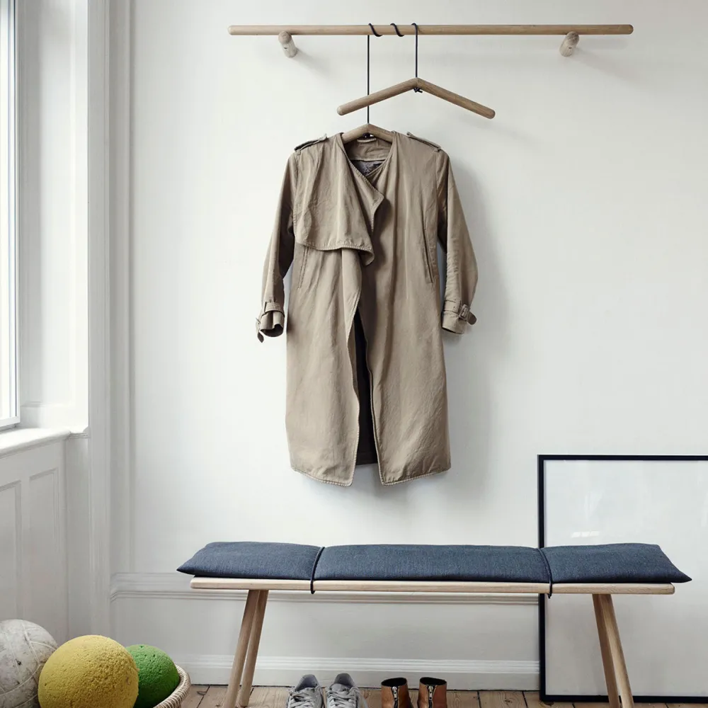 Smukt garderobeophæng fra Skagerak i et tidløst, nordisk design. Ophænget pynter på væggen samtidig med, at det er rigtig praktisk. Hæng bøjler på og brug ophænget som din nye garderobestang med fine bøjler.