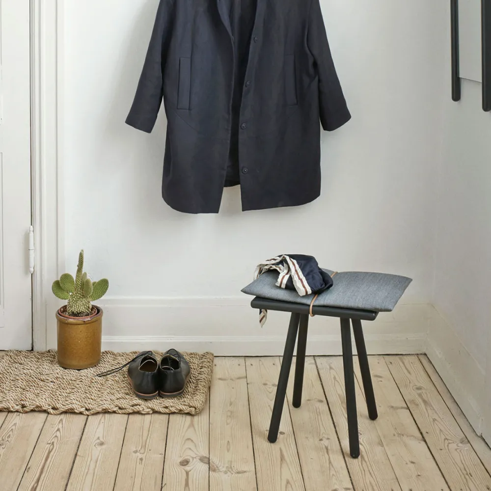 Fin skammel med et moderne udtryk fra Skagerak. Skamlen har en lækker hynde og en rå lædersnor, der sammen med egetræet giver skamlen et smukt look, som vil pynte i ethvert rum. Brug skamlen i entreen, gangen, soveværelset eller et helt fjerde sted.