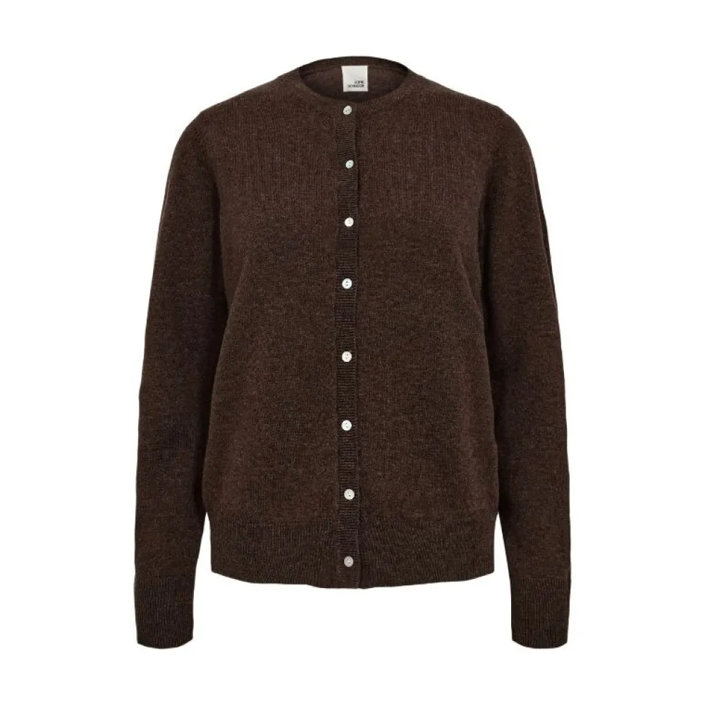 Cardiganen har et enkelt og tidløst design med lange ærmer, regular fit og knaplukning foran, hvilket gør den nem at style – både lukket over en top eller åben over en kjole eller skjorte. Det brune ulddesign gør den perfekt til både arbejde og hverdagsbrug, hvor du ønsker et elegant, men afslappet udtryk.