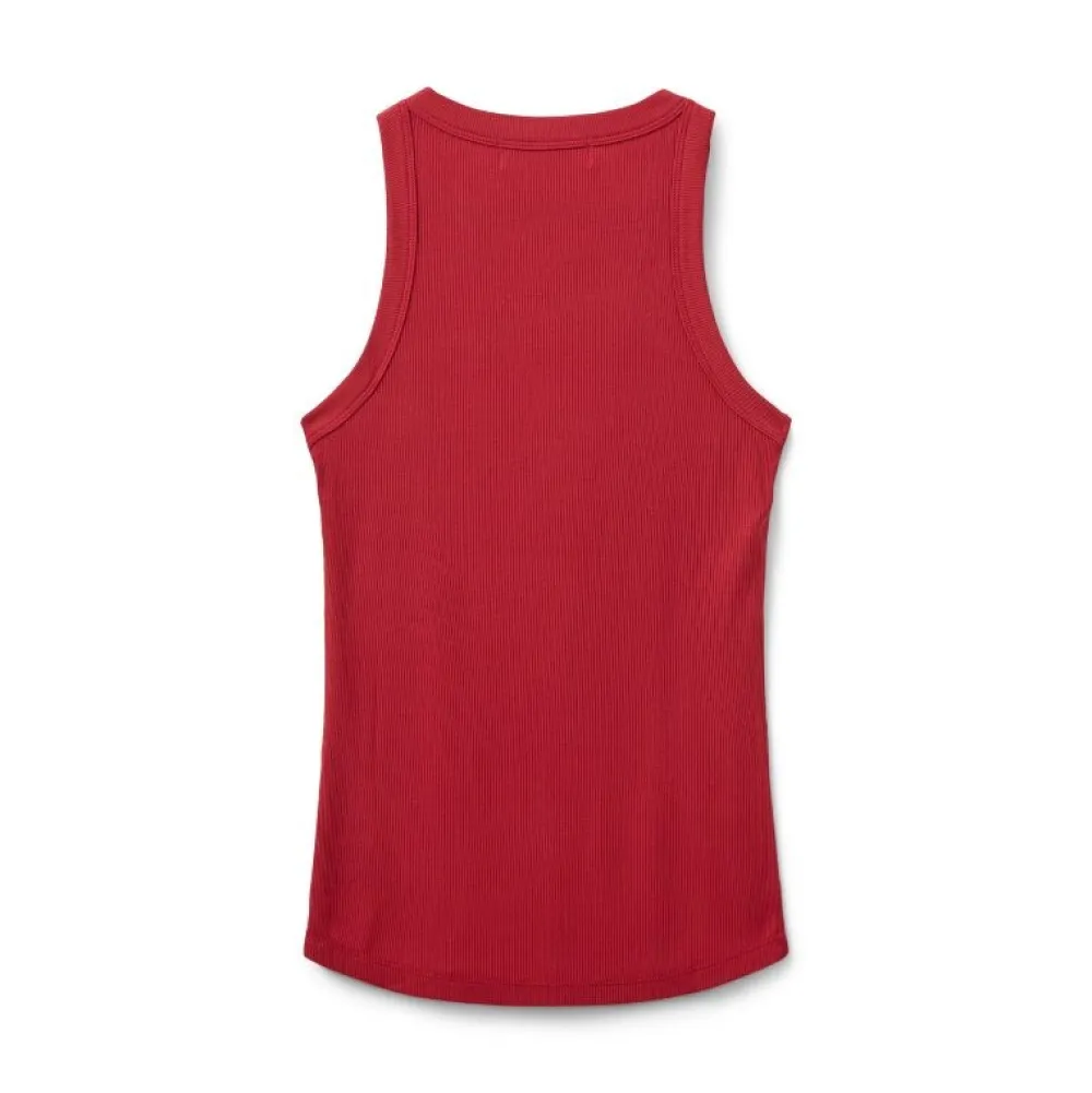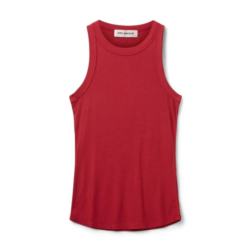 Toppen har en regular længde og er ideel både som base under en blazer eller alene til et mere afslappet look. Med sin intense røde farve tilfører den et friskt pust til enhver outfit, og materialet føles blødt og strækbart mod huden – perfekt til både hverdagsbrug og festlige lejligheder.