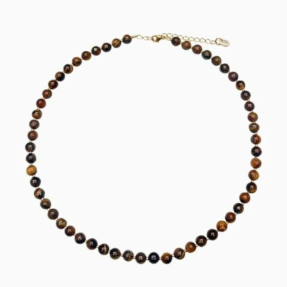 Stilfuld halskæde, der er skabt med formålet om at fremme healing og styrkelse af indre kraft. Krystallen menes at have beskyttende egenskaber, der kan hjælpe med at balancere følelser og fremme fysisk velvære. De gyldne og brune toner symboliserer styrke og stabilitet. Håndlavet med omhu og præcision er halskæden mere end blot et smykke – dén er et symbol på helbredelse og indre ro. Halskæden er unika, idet krystaller aldrig er ens.