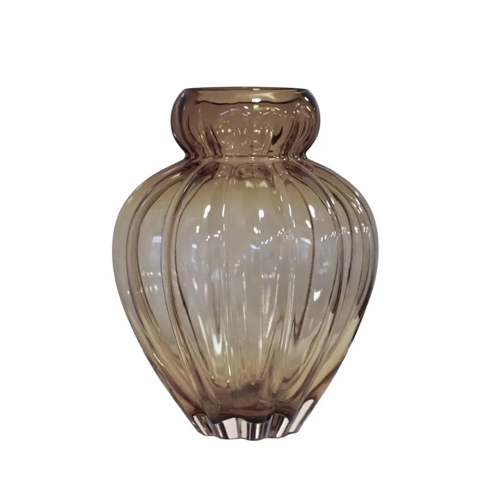 Moderne vase med et skulpturelt formsprog og elegant mønster. Vasen er designet til at være et centralt designobjekt i boligindretningen hele året – uanset blomstertrend og sæson. Vasen er mundblæst, hvorfor der kan forekomme luftbobler og andre ufuldkommenheder – dét er blot en del af charmen.