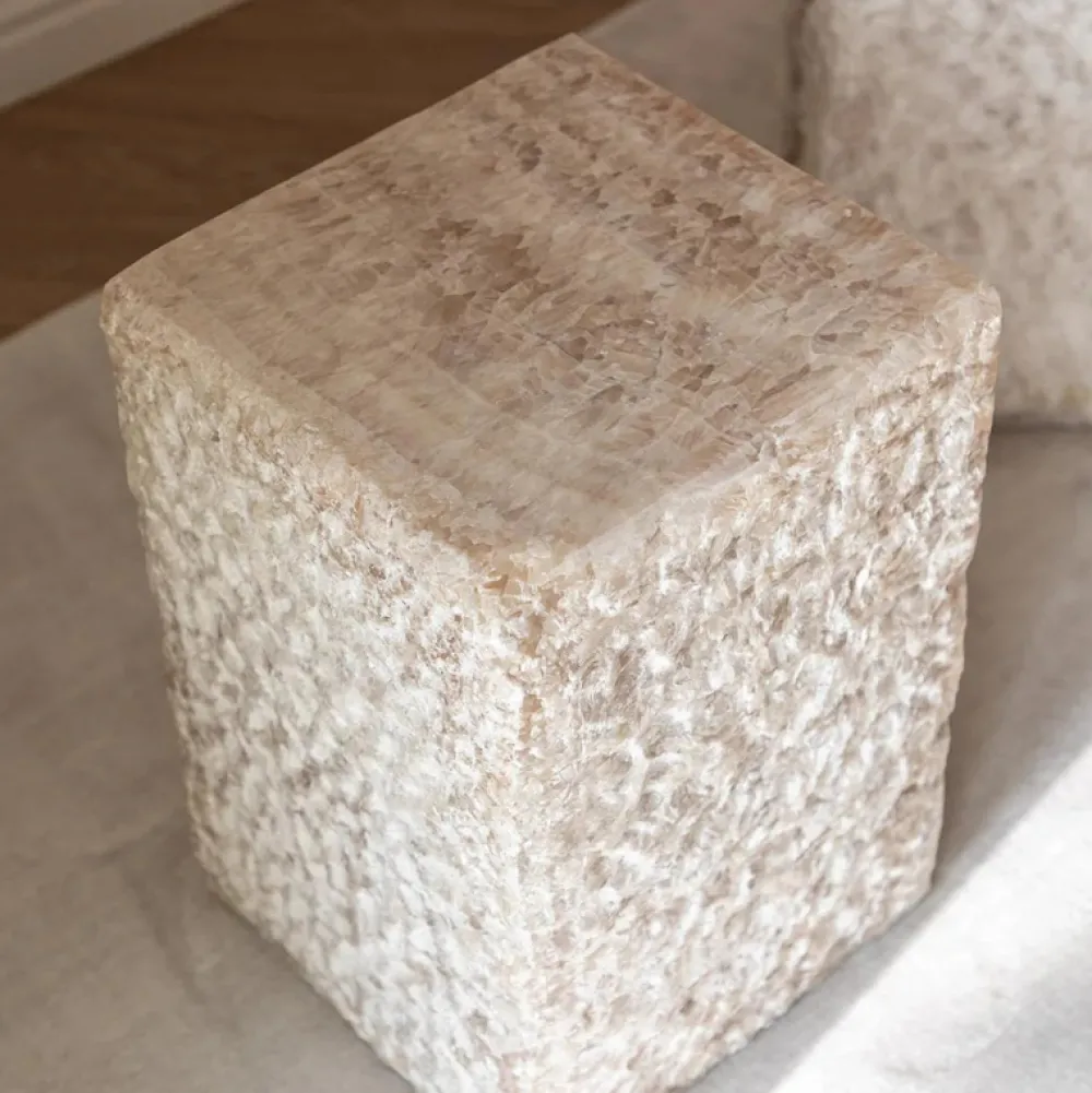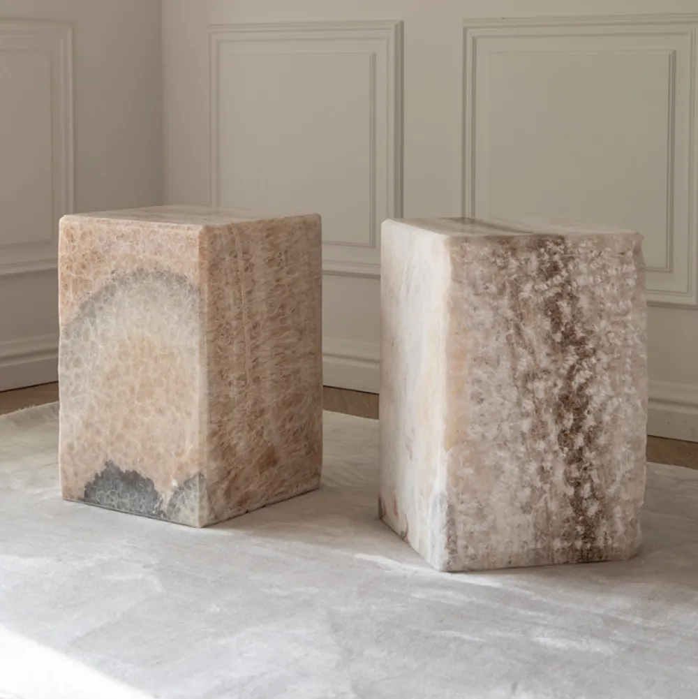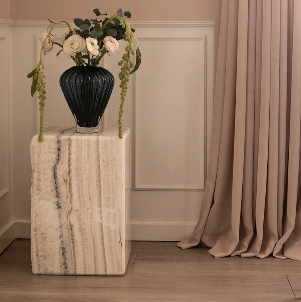 Ivy er et eksklusivt sidebord, hvor hvert bord er helt unik. Den smukke, rå Onyx, sten er en moderne tilføjelse til indretningen. Ivy kan både bruges som sidebord og som piedestal. Bordet har to naturlige sider og to sider, som er poleret, som giver en førsteklasses blanding af elegant og rustik. Ivy er et 100% naturprodukt, hvilket betyder, at hvert bord har helt enestående særpræg.