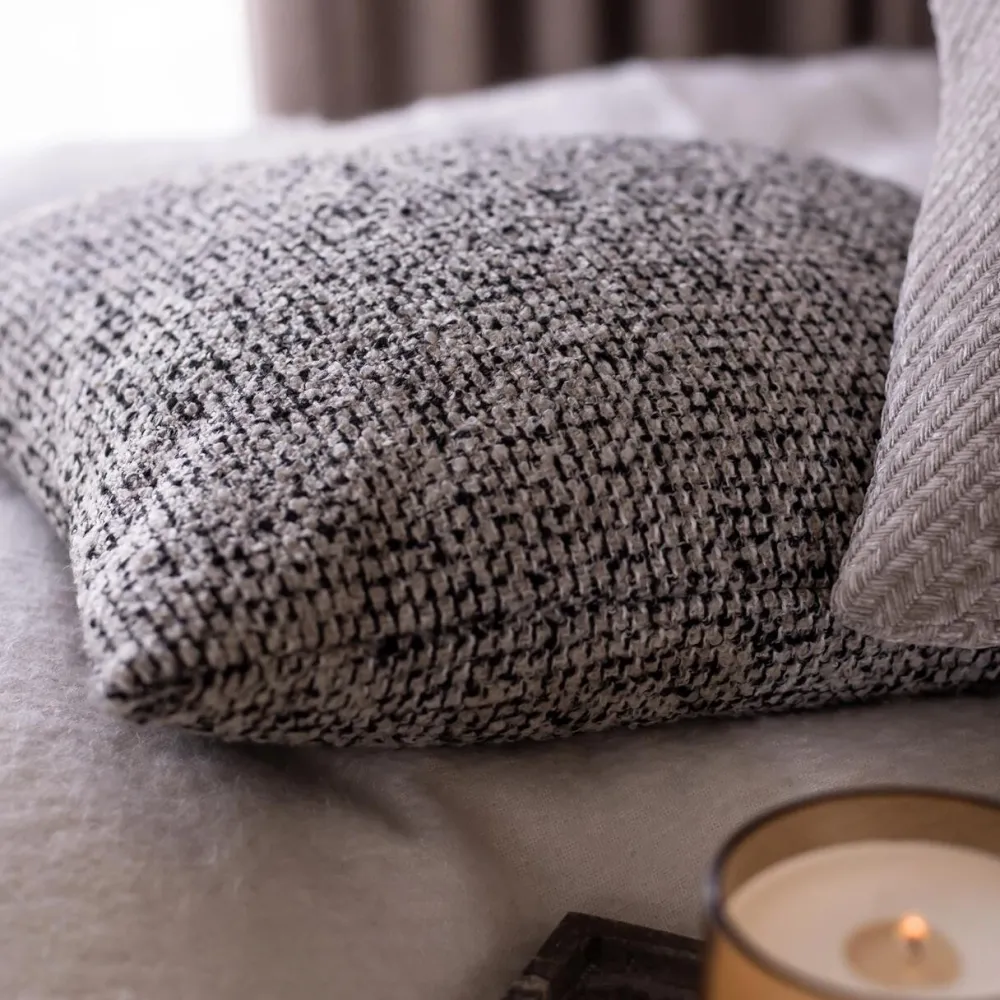 Enkel, men detaljeret pude, som er designet til at bringe subtil elegance i boligindretningen. Puden er fremstillet i luksuriøst, tweed-inspireret materiale, der kombinerer tekstur og æstetik på en måde, der både er klassisk og moderne. Med sin raffinerede overflade og tidløse udtryk er puden en ideel detalje til skabelsen af en indbydende atmosfære, hvor komfort møder luksus.