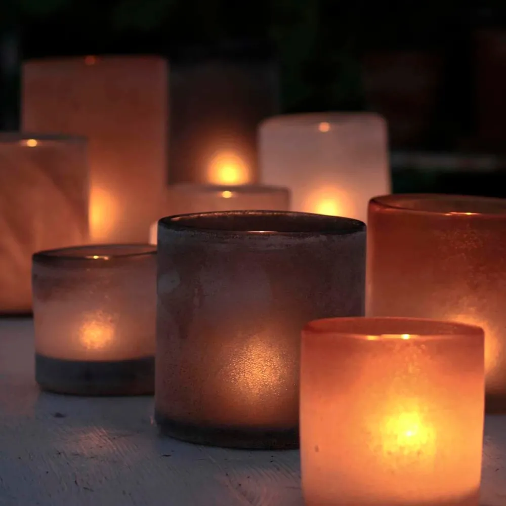 Farvefin og charmerende lysestage med frostet finish. Glasset mundblæses, hvorefter det ved høje temperaturer rulle i soda, hvilket fremkalder en kemisk reaktion, der tilfører glasset dets fine overflade. Denne håndlavede proces bevirker, at der kan forekomme variationer i form og farve. Stearinlygten er ideel at kombinere med andre lysestager i forskellige størrelser, former og farvenuancer.