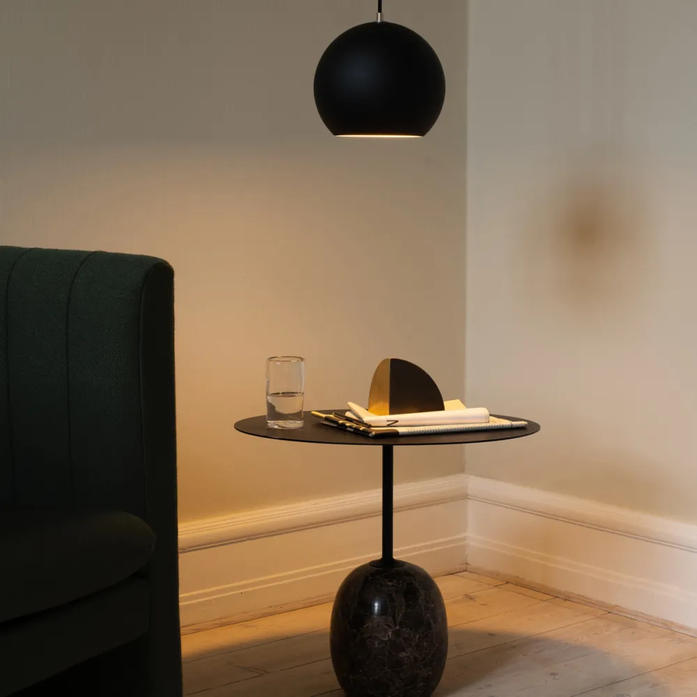 Materiale: Marmor fod med plade i pulverlakeret stål i farven Warm Black.