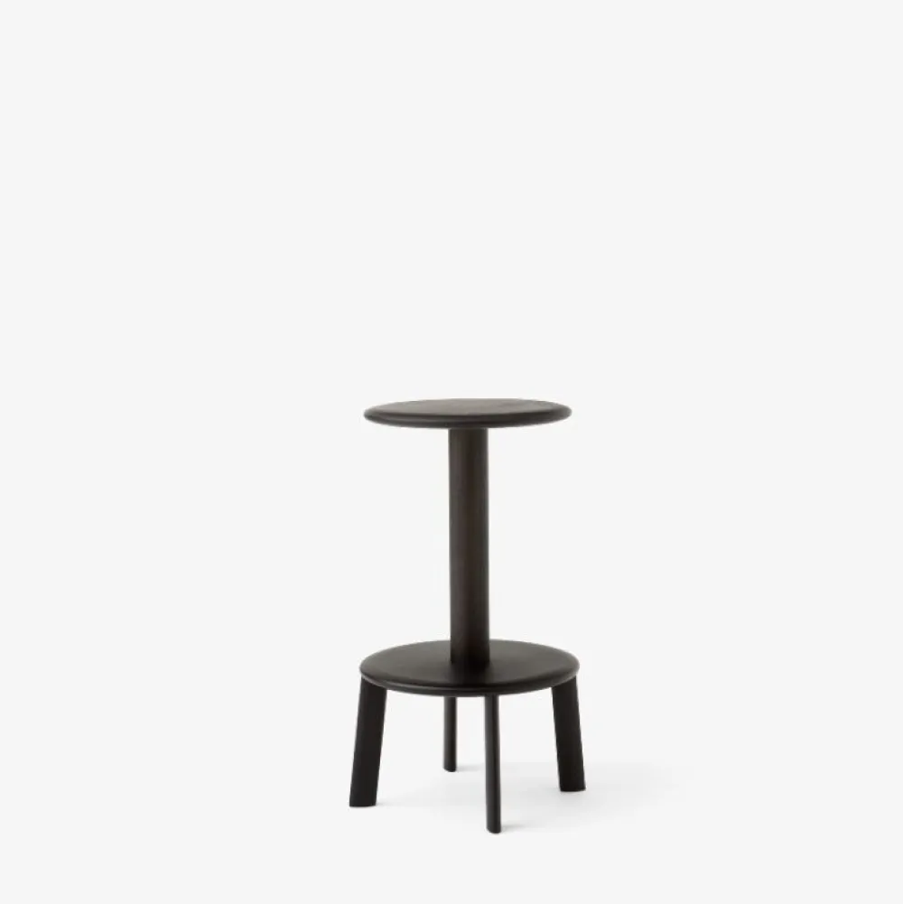 Et grafisk slående design med en følelse af stabilitet, Anderssen & Volls Massif stole betegner en totemisk silhuet i en kompakt form. Skamlen er rig på materiale og suppleres af den glatte drejefunktion på det massive egetræssæde.