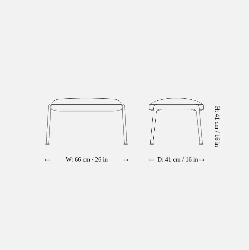 Fodskamlen er beregnet til at fungere sammen med Muno loungestolen og giver et ekstra niveau af komfort i lounging-miljøer. Den står i den optimale højde for begge stolemodeller og tilbyder lækker støtte til forlænget afslapning. Derudover kan designet også bruges som puf eller ekstra siddeplads, når man er vært for større grupper.
