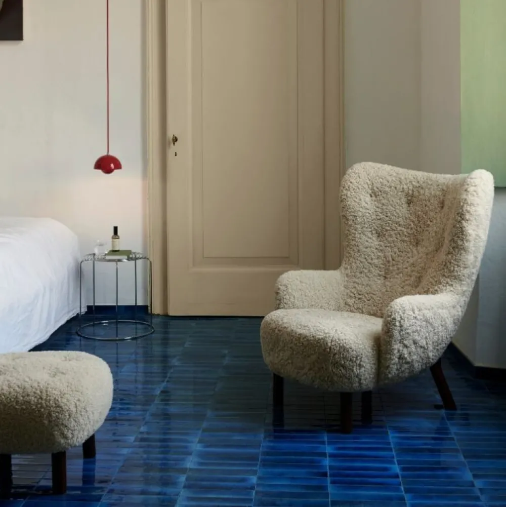 Poufen er en ideel ledsager til Petra, idet der herved skabes et elegant lounge-arrangement. Poufen er designet med afrundede ben og polstret, hvilket tilfører en organisk varme til ethvert interiør.