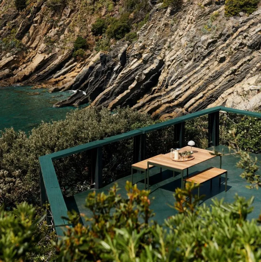 En smuk fejring af natur og materialer. Anderssen & Volls udendørskollektion Ville blander elegant stål og træ, som resulterer i et praktisk og smukt havebord. Den mindste af to bordstørrelser AV25 er velegnet til både terrassen og haven. Teaktræspladen giver en varm og indbydende overflade, som kan olieres eller efterlades ubehandlet pr. individuelle præferencer.