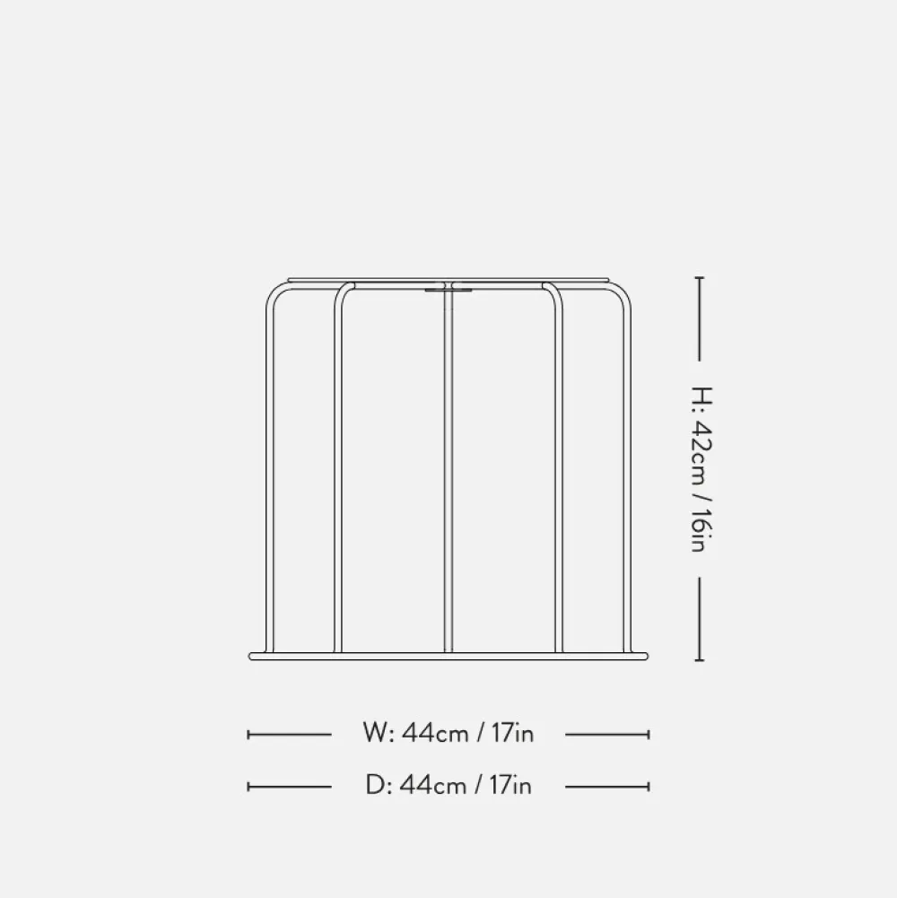 Wire Stool er et ikon fra arkiverne bestemt til at blive et samleobjekt, den luftige gennemsigtighed gør det til et alsidigt design, der er velegnet til en bred vifte af indretninger. Hver Wire Taburet har mulighed for aftagelige siddepuder, i fire farver, der kan monteres med en diskret magnet.