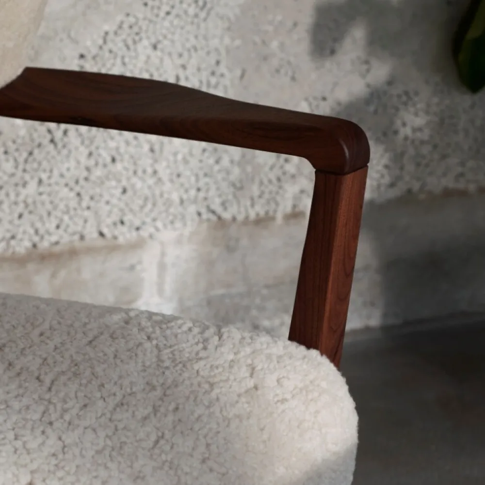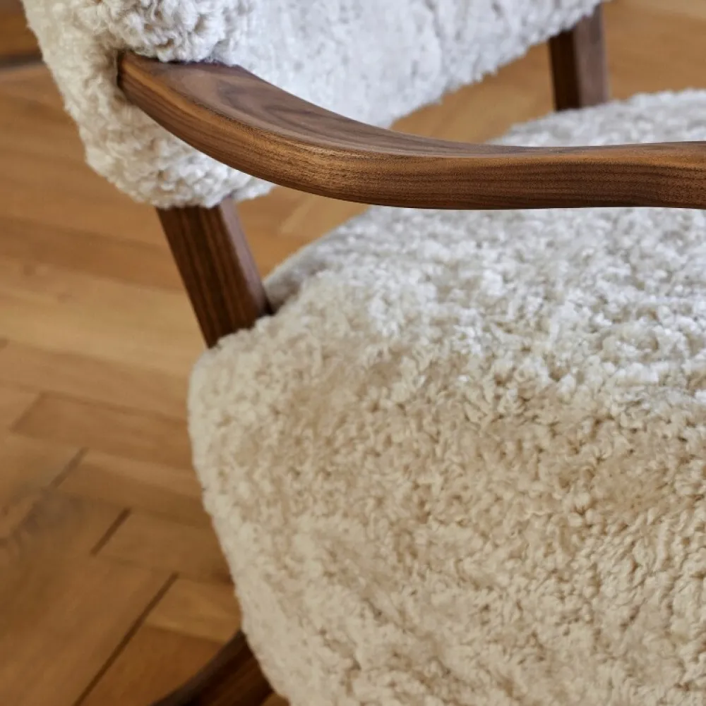 Materialer: Oliebehandlet valnød, HR-skum, polyesterfyld, Moonlight Sheepskin