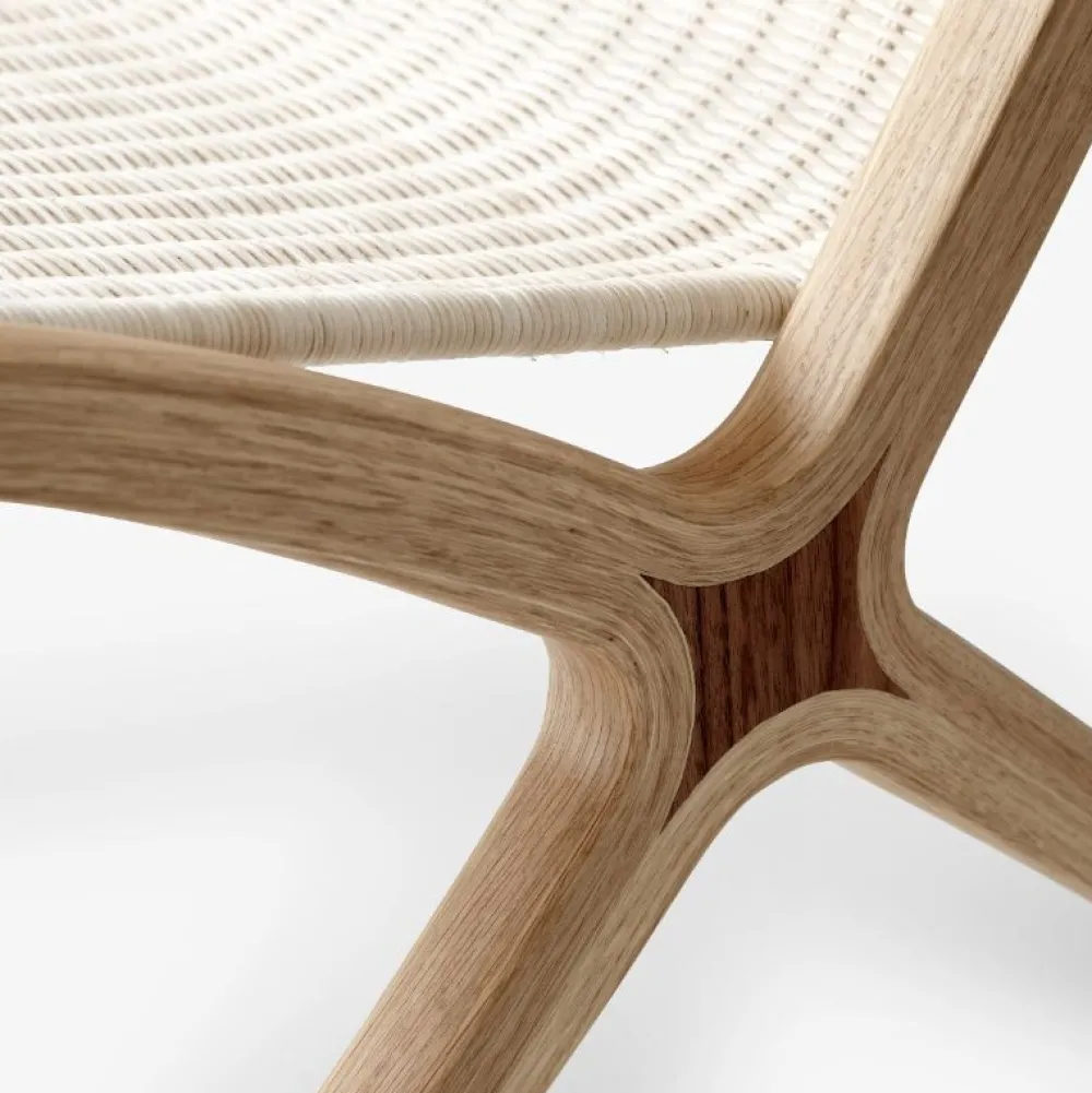 X-loungestolen viser et elegant forhold mellem materiale og koncept og repræsenterer Hvidt & Mølgaards højdepunkt som møbeldesignere. Efter i årevis at have eksperimenteret med konceptet med et lamineret træstel inspireret af gamle tennisketchere i træ, udgav den danske designduo Hvidt & Mølgaard i 1959 X, en loungestol med en markant skrå silhuet og diskret æstetik.