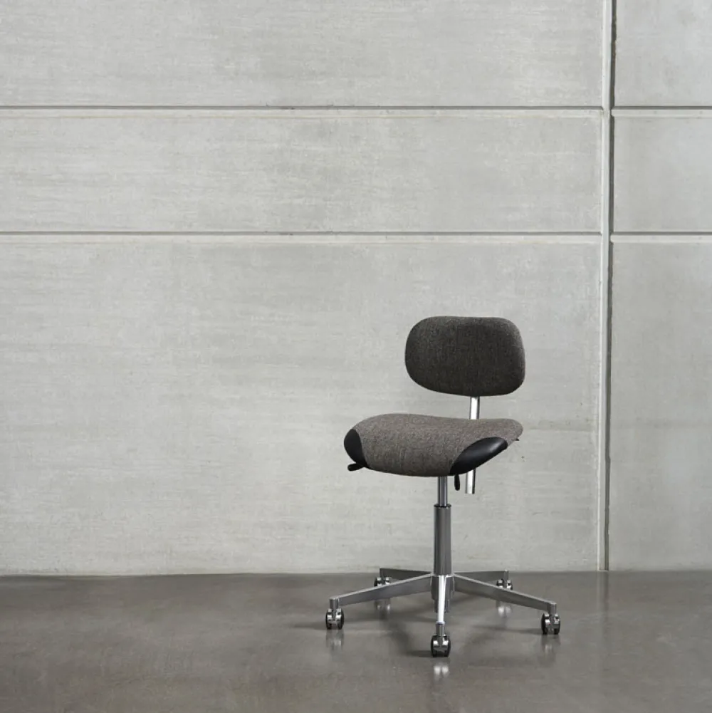 Stolen har en poleret alu fod, som er Ø 64 cm. Herudover har stolen 5 hjul a 50 mm.