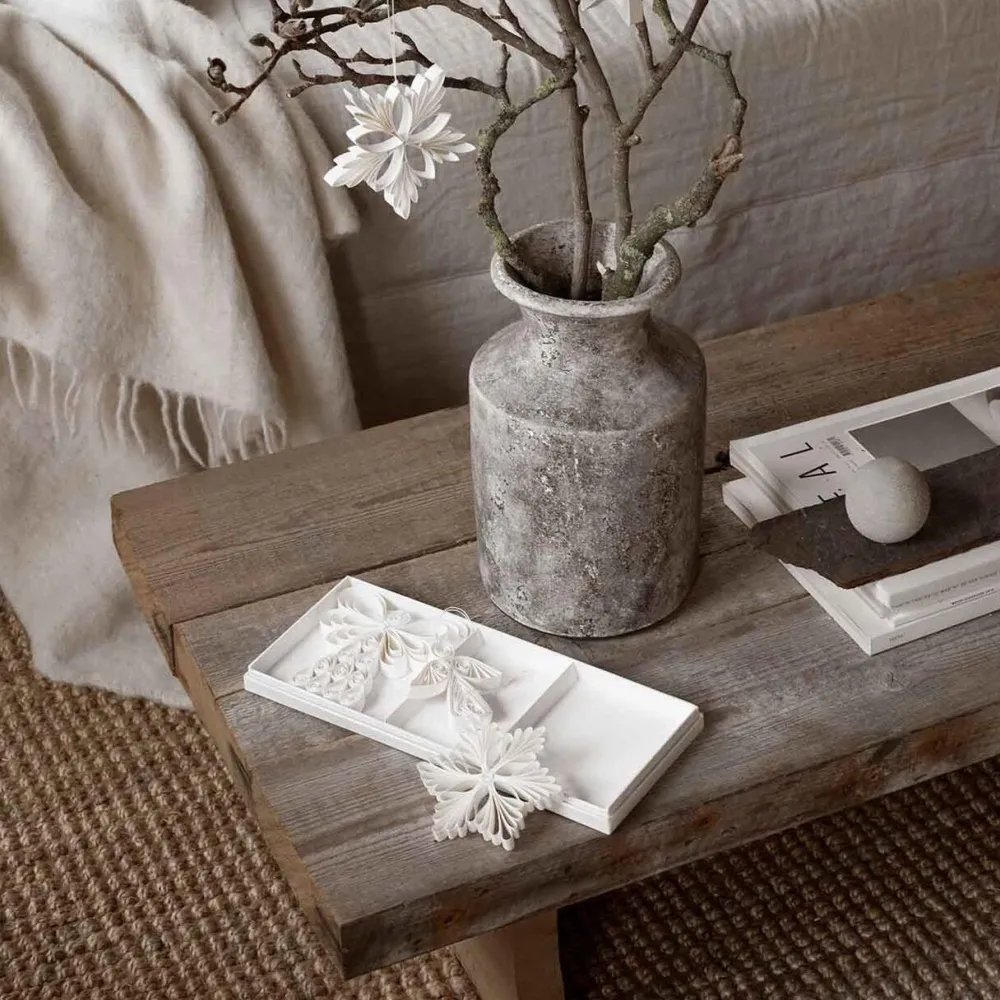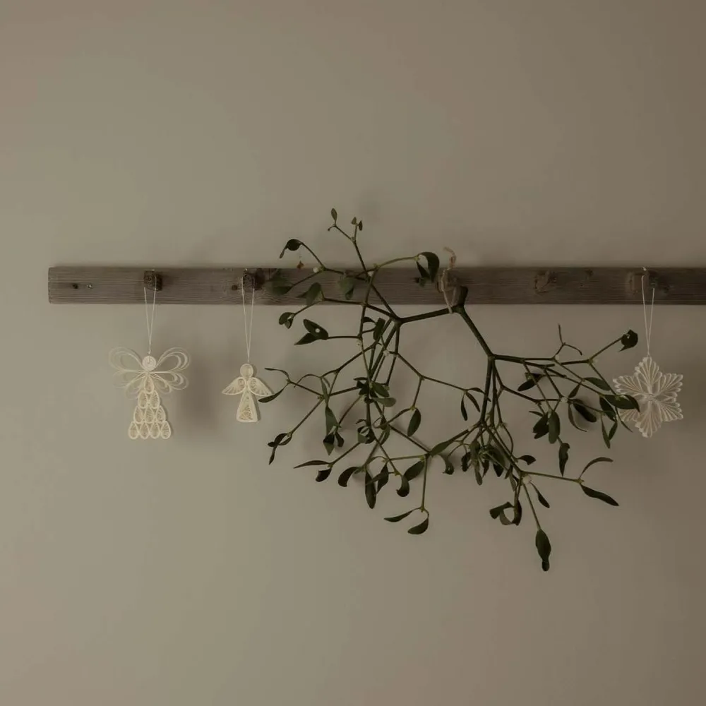Enkle, tidløse og stemningsfulde papirornamenter, der i al sin enkelthed er en fin indretningsdetalje. Hvert ornament er udformet med omhu, hvilket afspejles i det delikate design. Lad papirornamenterne være en elegant tilføjelse til juletræet, juleborddækningen eller i vinduet. Uanset hvor disse tre ornamenter placeres, vil de med garanti højne julestemningen. Desforuden er ornamenterne ideelle som værtinde- eller adventsgave.