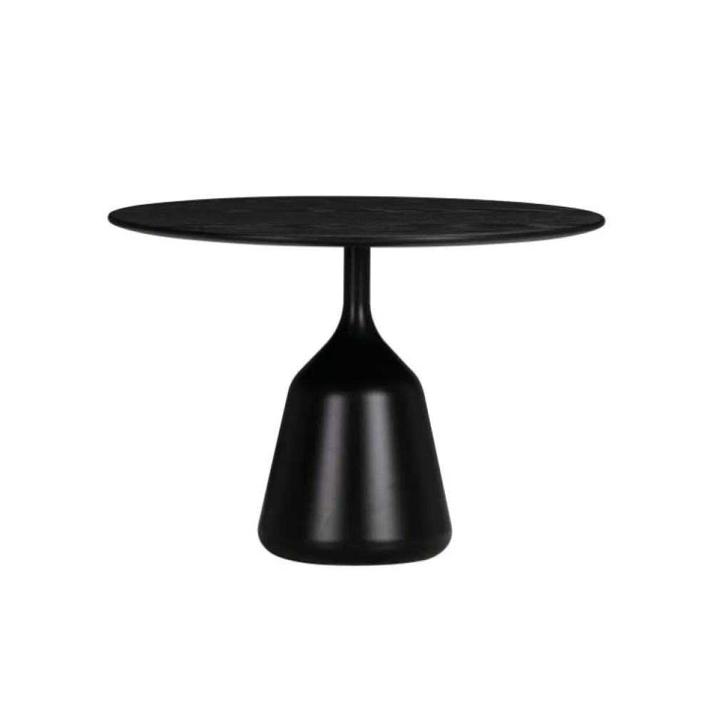 Elegant sidebord med rummelige former. Coin-serien fusionerer cirkulære og kegleformede komponenter. Coin er et geometrisk minimalistisk sidebord som smelter sammen, mens det skiller sig ud. Basen er støbt i sort pulverlakeret aluminium og pladen er af sortbejdset egefinér. Coin serien omhandler seks sideborde og seks spiseborde.