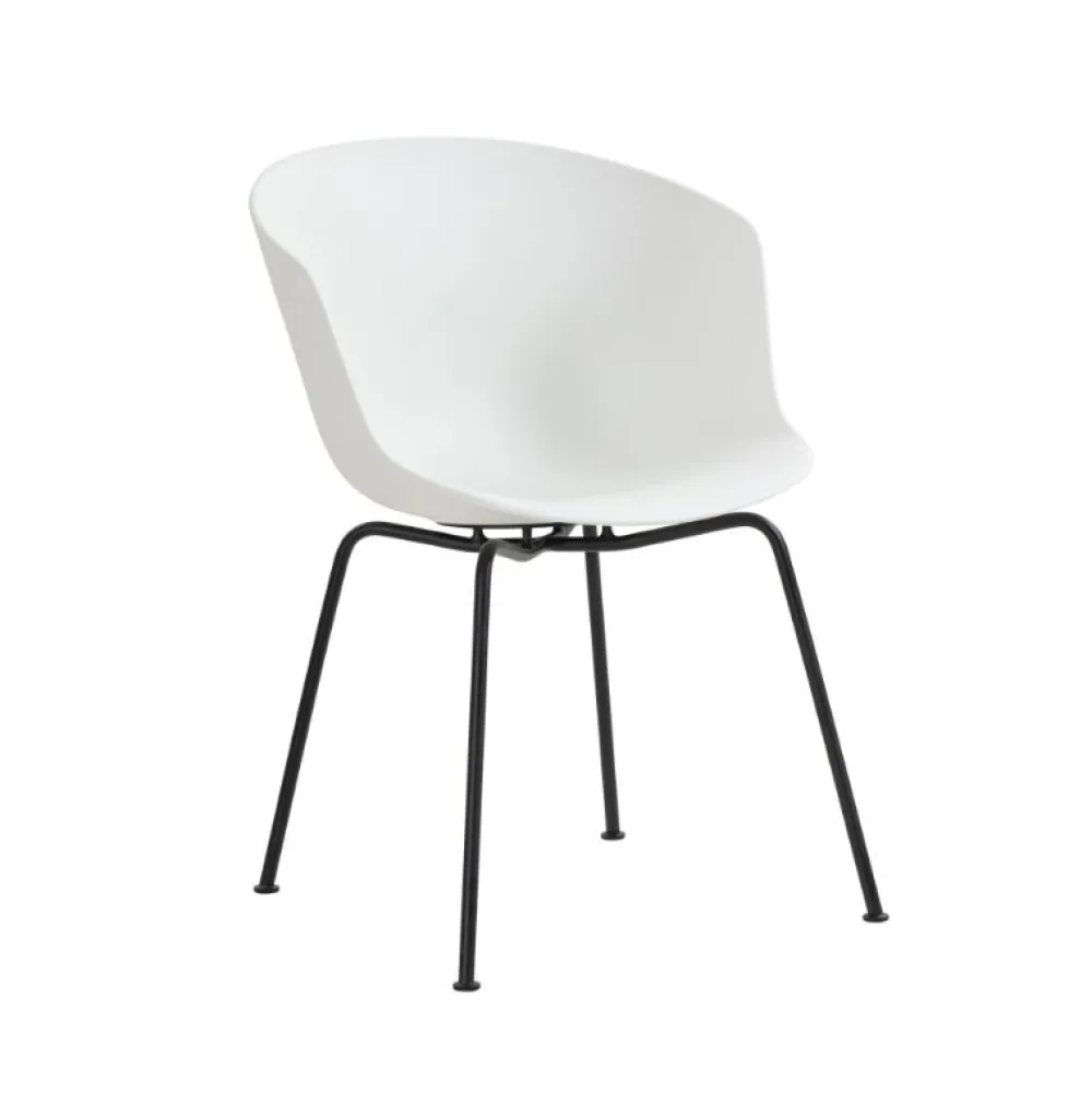 Elegant og behagelig spisebordsstol. Stålstellet på V2 tilføjer lethed til det rummelige design af skallen. En let hældning foran og bagpå skallen giver en behagelig siddekomfort. Med sin bløde form omfavner armlænene elegant ethvert bord, hvilket gør stolen perfekt til alle slags omgivelser.