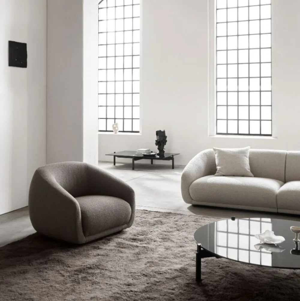 Designet af franske Tristan Lohner, kollektionen spænder over en 2,5- og 3-personers sofa og en loungestol, der vækker sanserne med indbydende kurver og beroligende blødhed. Basen i massiv sortbejdset eg løfter den voluminøse sofa fra jorden og gør udtrykket lettere.